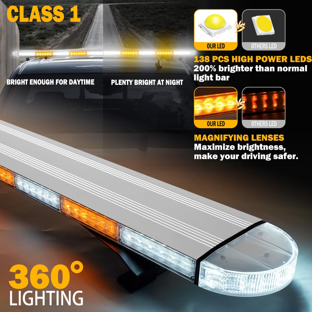 ASPL 49 inch Low Profile Rooftop Emergency Strobe Lights Bar Flashing Warning Security Traffic Advisor Hazard/Full Aluminum/Take Down & Alley Light for Trucks Tow Construction Vehicles (Amber/White)