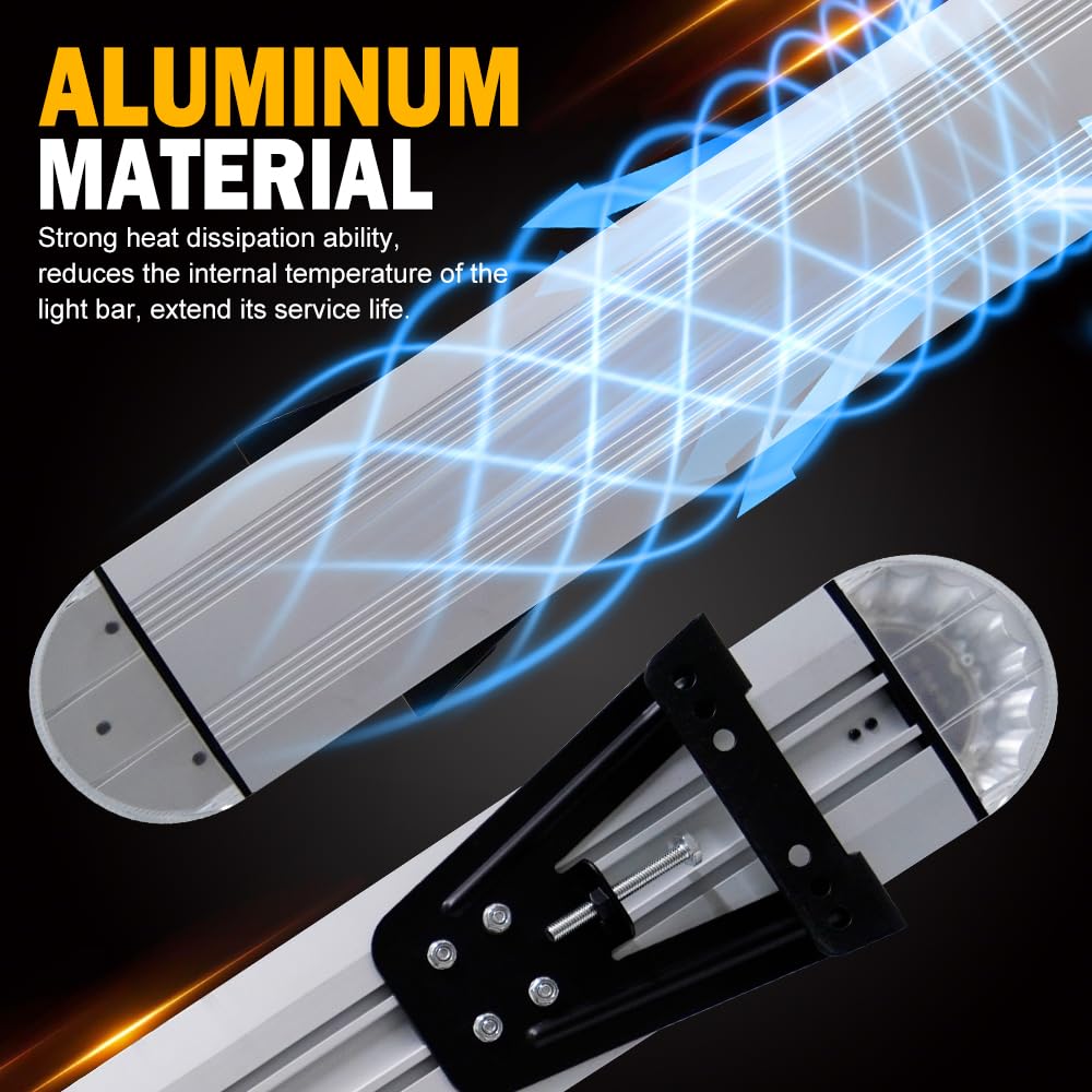 - ăDOUBLE-LAYER ALUMINUMăProfessional-Grade design with double-layer aluminum alloy board. Strong heat dissipation ability, reduces the internal temperature of the light bar, long Life of up to 100,000 Hours. Ruggedized all-weather design for year-round operation.